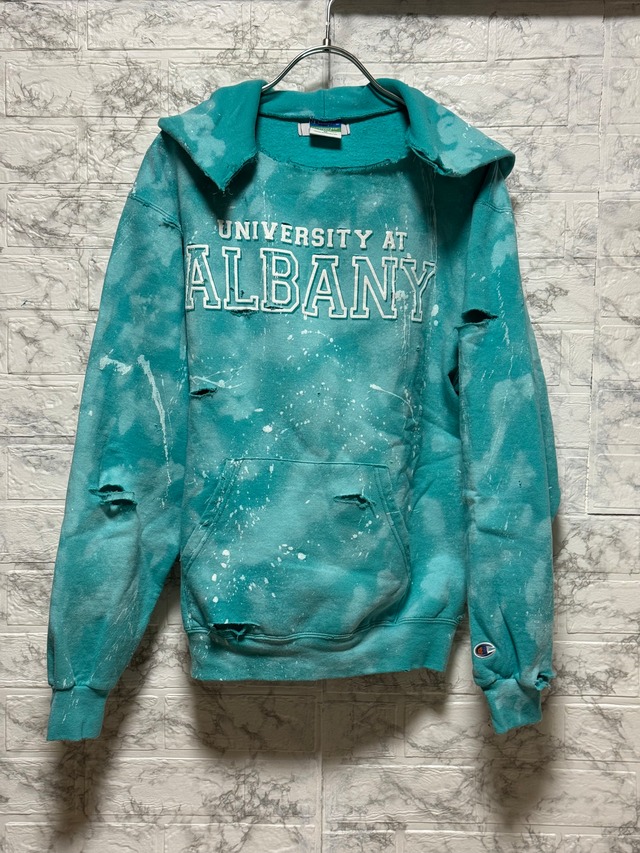 【サイズ】フリーサイズ (平置き採寸) ・肩幅:54cm ・身幅:56cm ・袖丈:63cm ・着丈:63cm ※採寸は手作業のため、若干の誤差がある場合がございます。 【素材】 綿ポリエステル混紡 【カラー】 ミントグリーン/ティファニーブルー ※撮影環境やモニター設定により、実際の色味と若干異なる場合がございます。 【商品説明】 チャンピオンのミントグリーンのパーカーにダメージ加工とブリーチ加工、さらにペンキ加工も入れた「Hedgehogなパーカー」 フード部分の首元を手で裂いてフードを大きく見せているのがポイント。 ワイドパンツなんかに合わせてコンパクトに着てもいいし、ジャストで着てアウターのインナーにも。 気分はジャストサイジングトップス! こちらは、古着(champion製)を使用してリメイクした一点物のトップスです。使用しているアイテムはすべて正規に購入した古着であり、リメイク後のデザイン・加工は当ブランドが一点一点手作業で行っております。 古物営業法および商標法に則り、リメイク販売可能な範囲内で制作しており、元のブランドとの提携・コラボレーション商品ではございませんので、あらかじめご了承ください。 リメイク品のため、既製品のような完璧さをお求めの方は購入をご遠慮ください。古着由来のダメージや使用感(色褪せ・毛羽立ち・小さな汚れなど)がある場合もございます。ご理解のうえご購入をお願いいたします。 【お手入れについて】 リメイク加工を施しているため、洗濯はできるだけ手洗いまたはネット使用の上、優しくお取り扱いください。 【返品・交換について】 原則として、イメージ違いやサイズ違いによる返品・交換は受け付けておりません。気になる点がございましたら、ご購入前にお気軽にお問い合わせください。