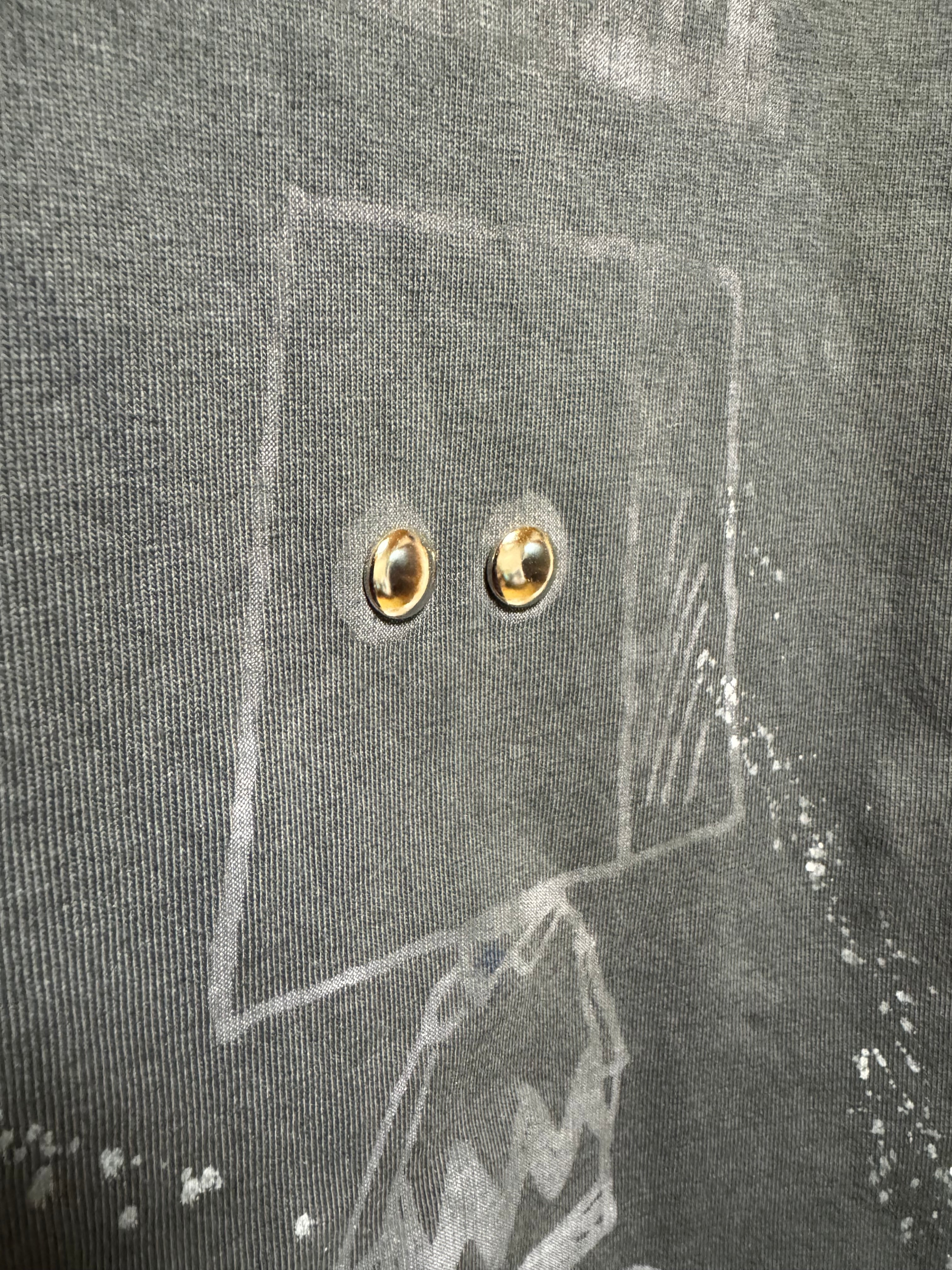 元は白ボディを墨黒に染めて、プリントの目の部分に丸スタッズを打ち込んでいます。
