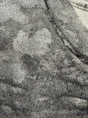 こちらのシルバーペイントも永久ではございません。3度洗いをして耐摩擦も確認していますが、過度な摩擦によりグレーっぽい粉のようなものが付く事も可能性としてございます。